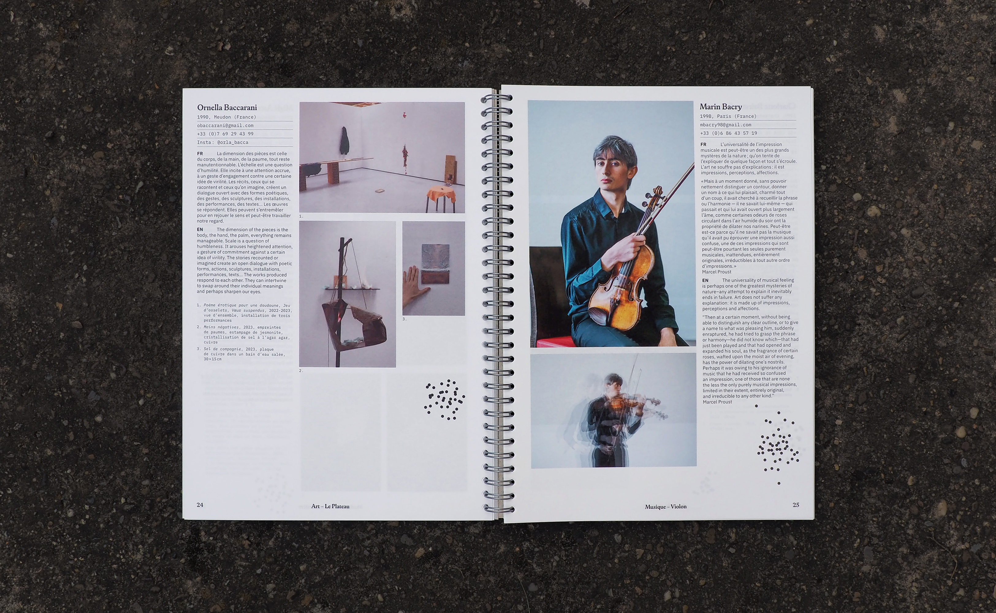 Ma pratique s’articule autour d’un fort intérêt pour les matériaux, les techniques d’impression et les façonnages, et je maîtrise la macro et la micro-typographie. J’aime réfléchir à la faisabilité technique des objets en parallèle de leur appréhension sensible et sensorielle.